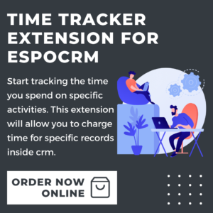 $ 319,00 Select optionsTime Tracker for EspoCRM is a paid extension that adds time tracking features to EspoCRM. Track time spent on tasks in modules such as Cases, Tasks, or Opportunities. View time logs, check time spent on specific task, and get detailed reporting and analytics to improve time management and increase productivity. The extension is fully integrated into EspoCRM and eliminates the need for external applications.